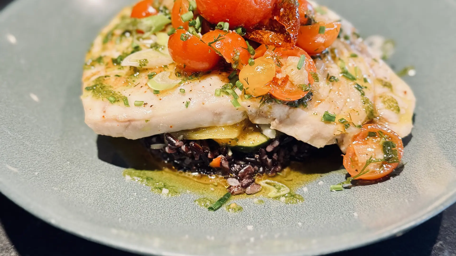 The restaurant serves traditional French and Mediterranean cuisine prepared with fresh seasonal ingredients. The menu features a wide variety of dishes such as fresh salads, grilled fish, meat dishes, pasta, pizzas, crêpes and delicious desserts. Vegetarian and gluten-free options are also available to suit different preferences.